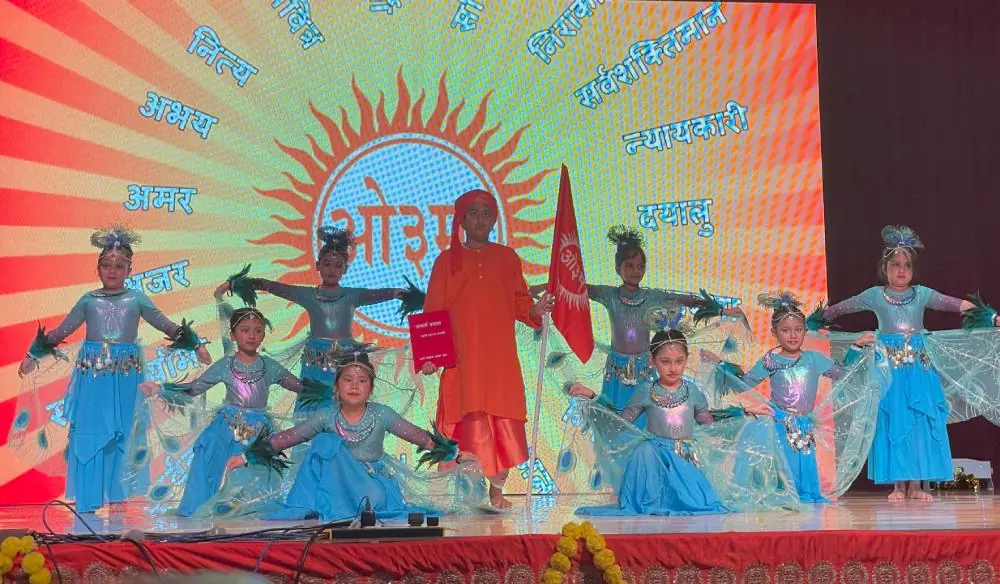 Saturday evening consisted of two dance performances. The first dance was performed by a group of grade 1 girls from DAVMES. Lyrics were mantras from the Vedas and Upanishads, and Sanskrit shlokas. Miss Aruna, Grade 1 teacher at DAVMES, added that girls had a forceful presence during the program thanks to Swami Dayanand ji who was the first in the modern era to emphasize on the importance of educating girls and women and recognize the mother as the first Guru in our life. A Guru is someone who removes the darkness of ignorance by applying the ointment of knowledge.